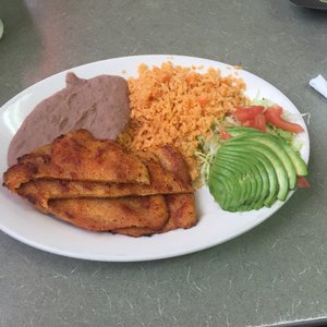 Pollo Orange marinated chicken breast topped with tomatillo Pico de Jefe lime crema and cilantro. 4820 S CICERO AVE. 1271 N Lake St.